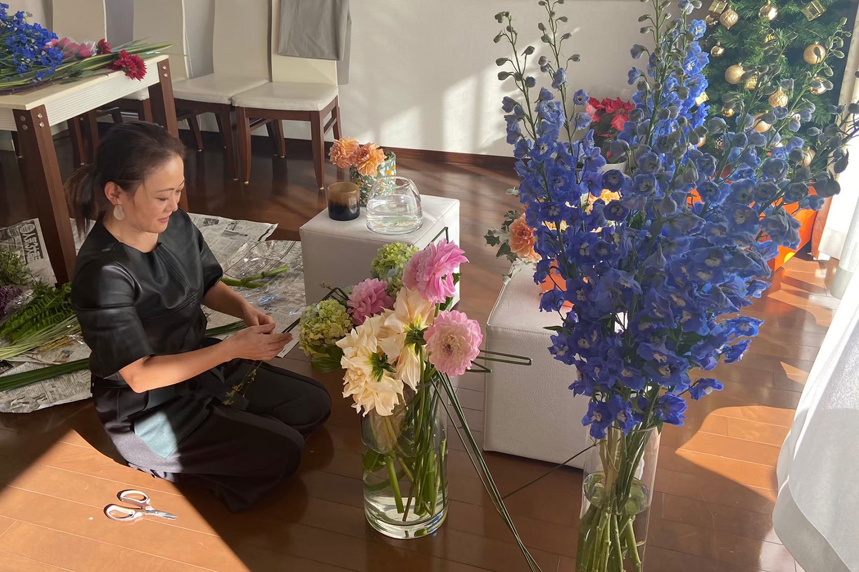 低迷する花業界そのものをなんとかしてもっと盛り上げたい、積み重ねてきた自分自身の経験や創作活動を後進に伝えていきたい、という気持ちがいつからかとても強くなり、フラワーアートスクールを開くことが目下の目標です。誰にでも芸術家足りうる素質というのは眠っていると思うのです。花に関して言えば、ただそれは資格を取るだけでは目覚めない。例えば、お寿司を握るという行為。「酢飯にわさびを塗ってネタをのせる」というのは単純で誰にでもできますよね?でも、それだけでは美味しい寿司は握れない。「シャリ炊き3年、合わせ5年、握り一生」といわれるほど時間のかかる修業なわけです。花の世界も同じです。花の言葉を感じ、それを受け止めた上で自分の思い描く景色をどこまで具現化できるか?が大切だと感じているので、そういった目に見えない部分を一緒に考え、感じ、伝えていくスクールにしたいと思っています。これは、既に計画がスタートしていて、叶いそうな段階の夢です。