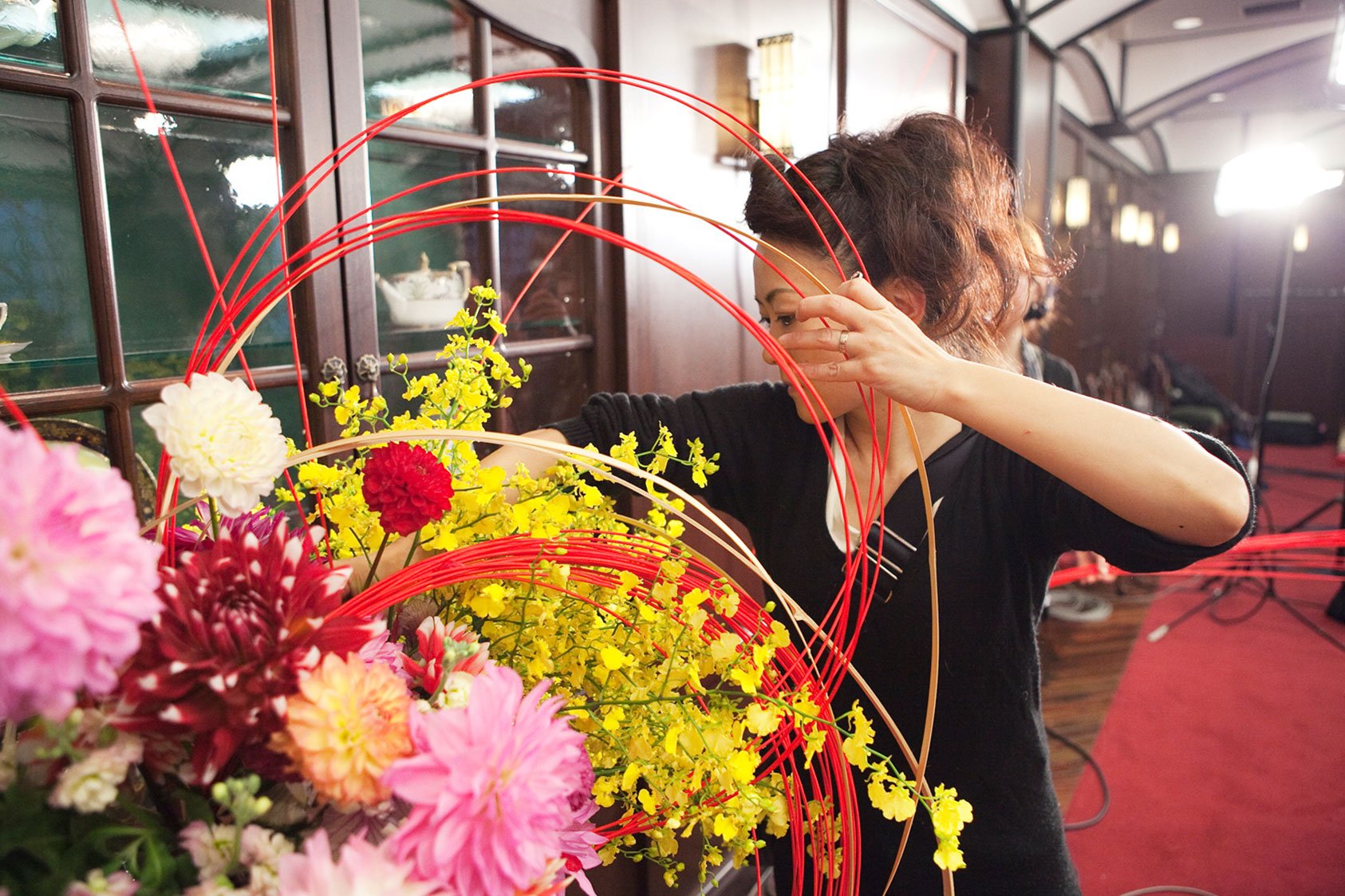若かったこともあり、装花の技術に期待されて入社したわけではなかったんですよね。それまでも合間にアシスタントとしてお手伝い程度はあったのですが、メインではなかった。ある日、バラエティ番組で人手が足りないということで装花部門に駆り出され、初めてメインとして担当させてもらえる機会がありました。その時に手掛けた作品が運よく評判になり、ありがたいことに次々声がかかるようになりました。